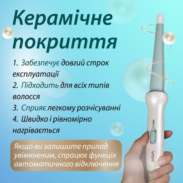 Спробуйте VGR V-596 зараз і отримайте професійний результат у домашніх умовах — гладкі, блискучі локони без зайвого тертя і шкоди. Замовляйте прямо сьогодні!