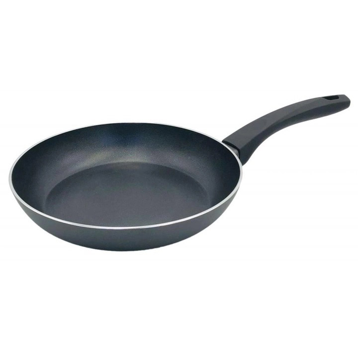 - Потовщений алюмінієвий корпус рівномірно розподіляє температуру по всій поверхні сковороди
