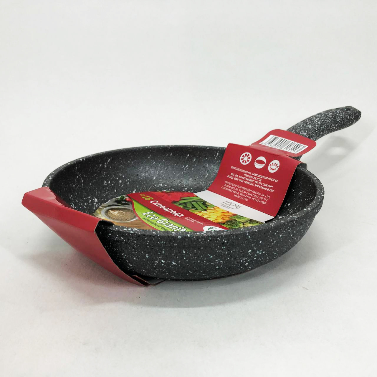 - Нове антипригарне покриття «Eco Granite» найбільш стійко до механічних пошкоджень та подряпин, безпечно для здоров’я людини та має чудову теплопровідність