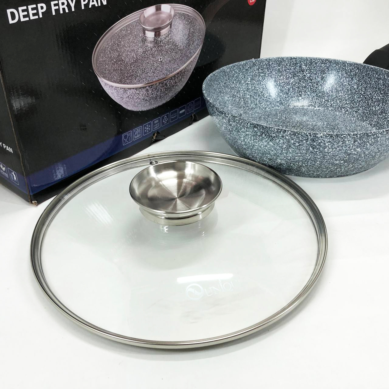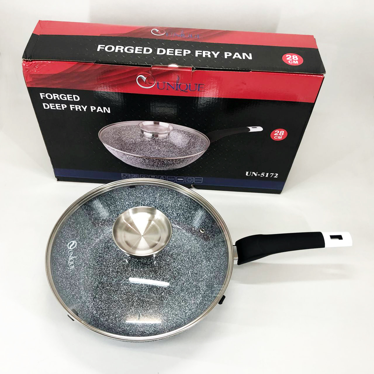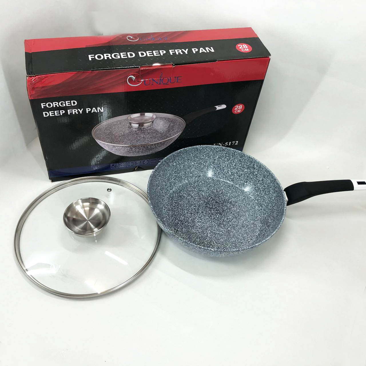 - Сковорода UNIQUE Granite coating має антипригарні властивості, зносостійка та довговічна.