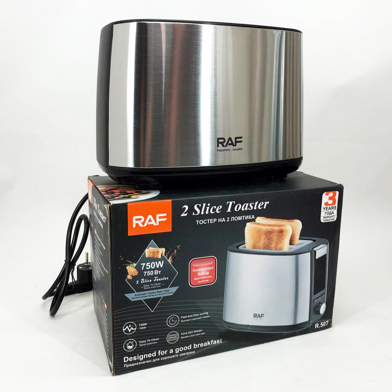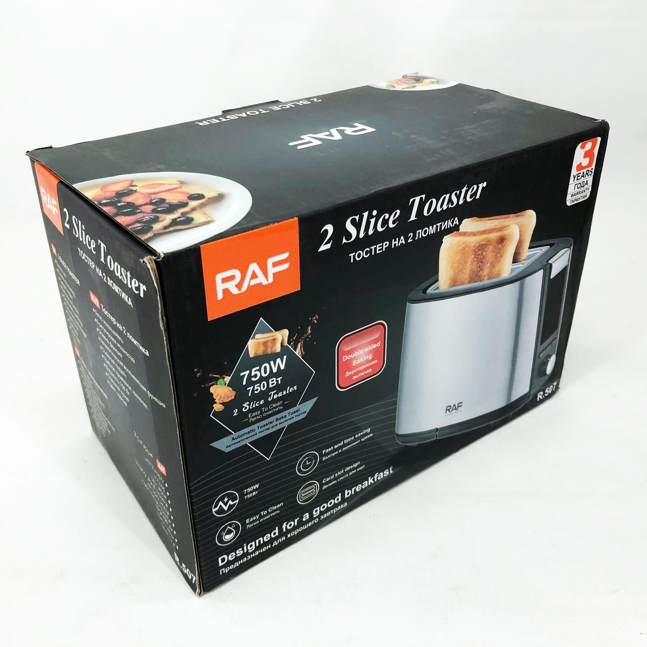 Тостер RAF R.507– це надійний і стильний прилад, який зробить щоранку приємнішим, забезпечуючи ідеально підсмажені тости, рогалики, вафлі та інші хлібобулочні вироби. Оснащений двома надширокими слотами, він підходить для будь-яких типів хліба, включаючи товсті скибочки та багети.