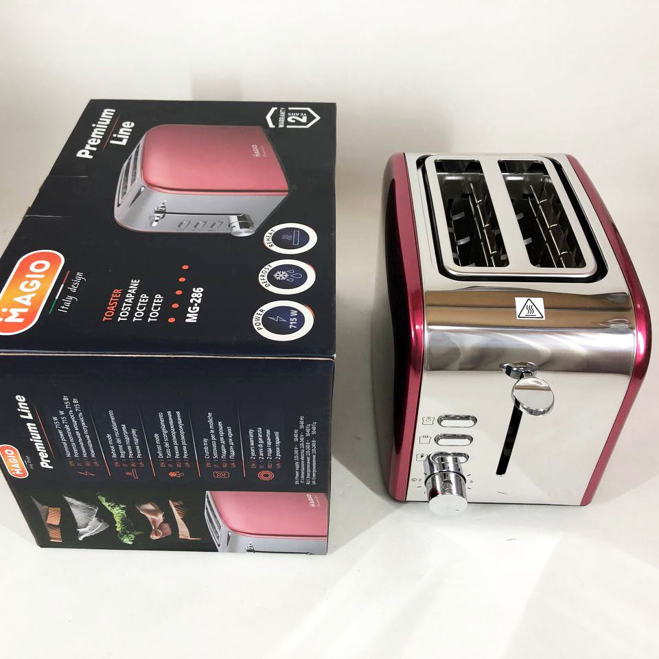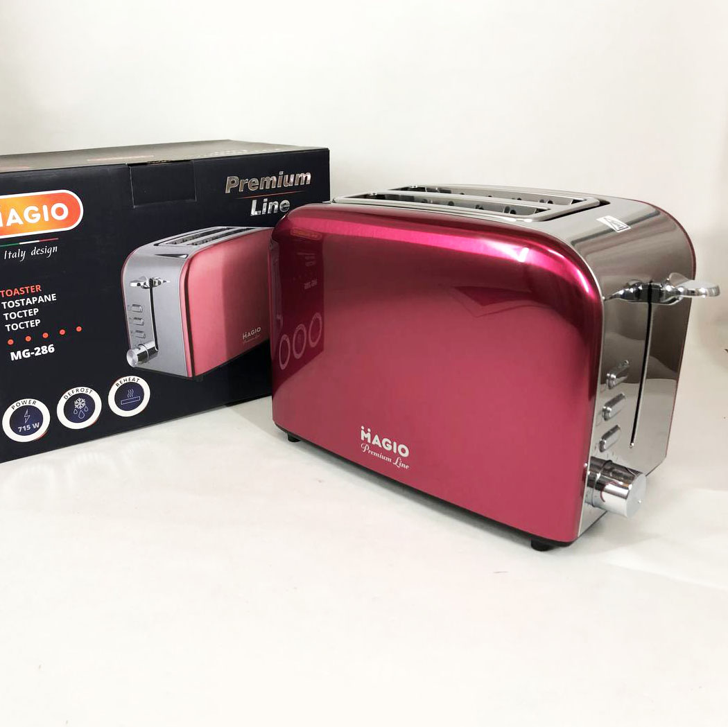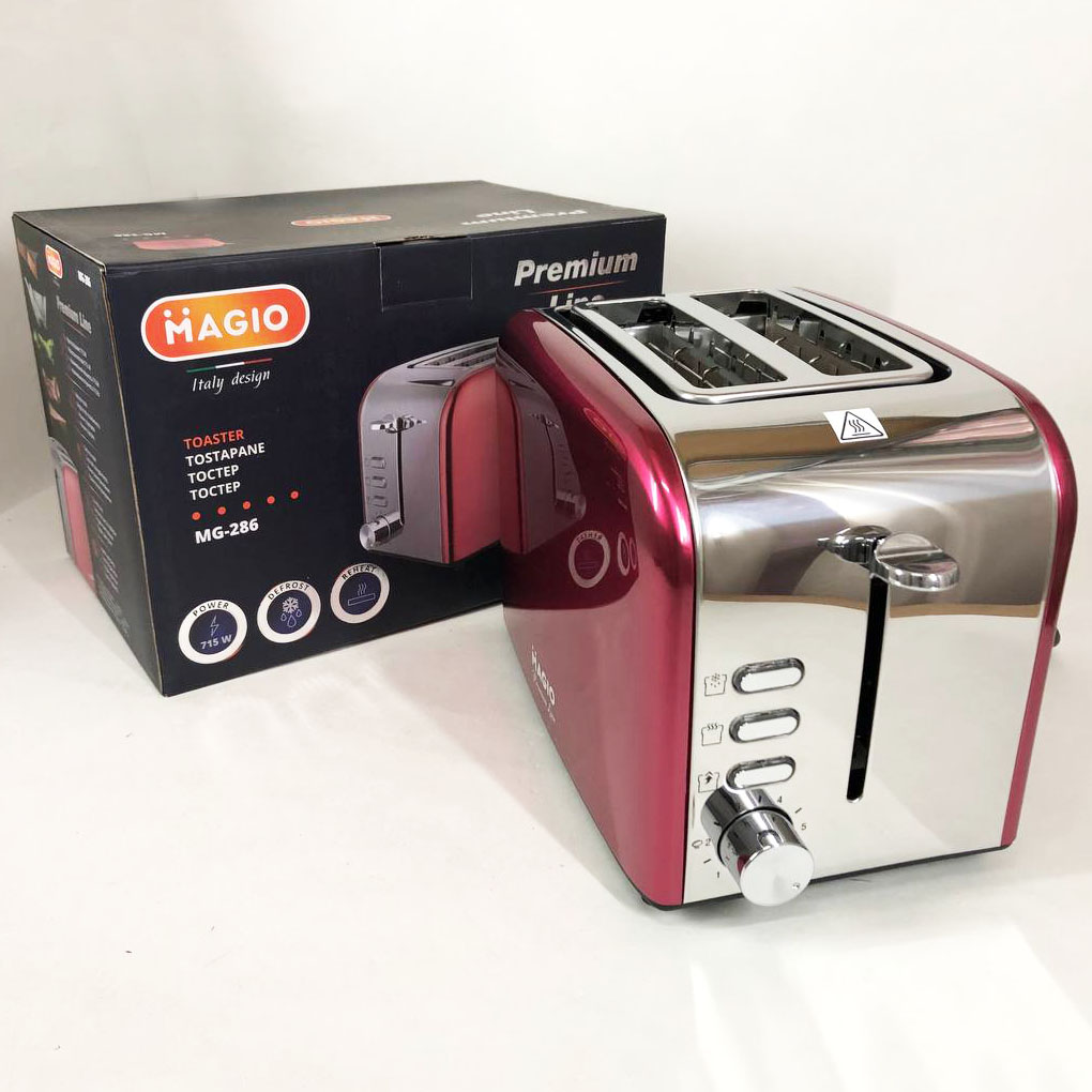 Стильний тостер Magio MG-286 не тільки приготує чудовий тост на сніданок, але й стане оригінальним акцентом в інтер’єрі Вашої кухні. Тостер має два відділення для хліба і піддон для крихт, що робить очищення приладу ще більш швидким і легким.