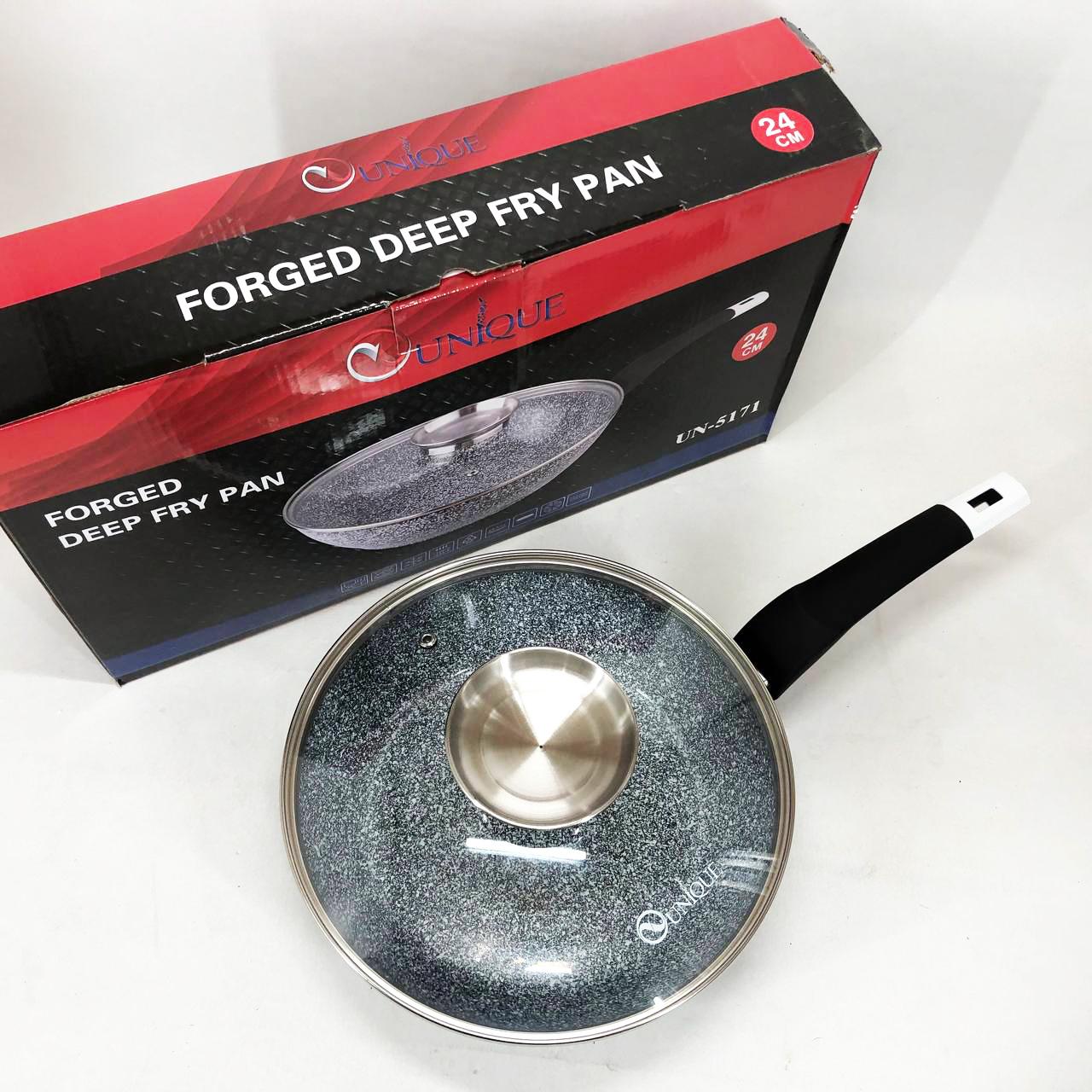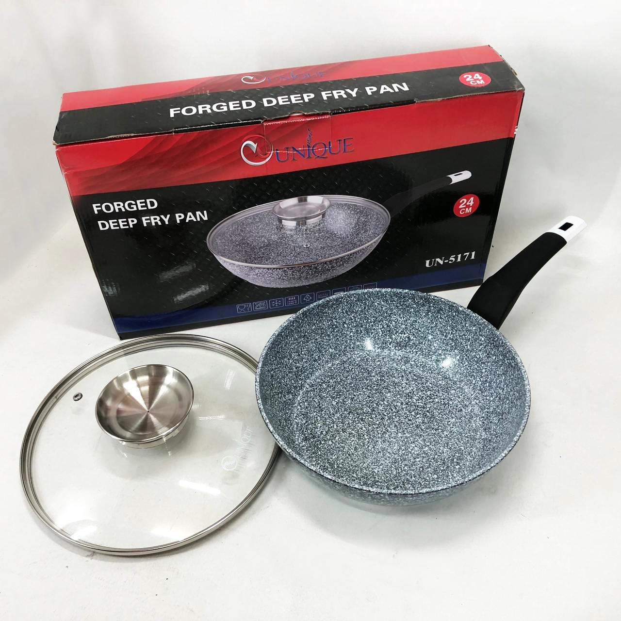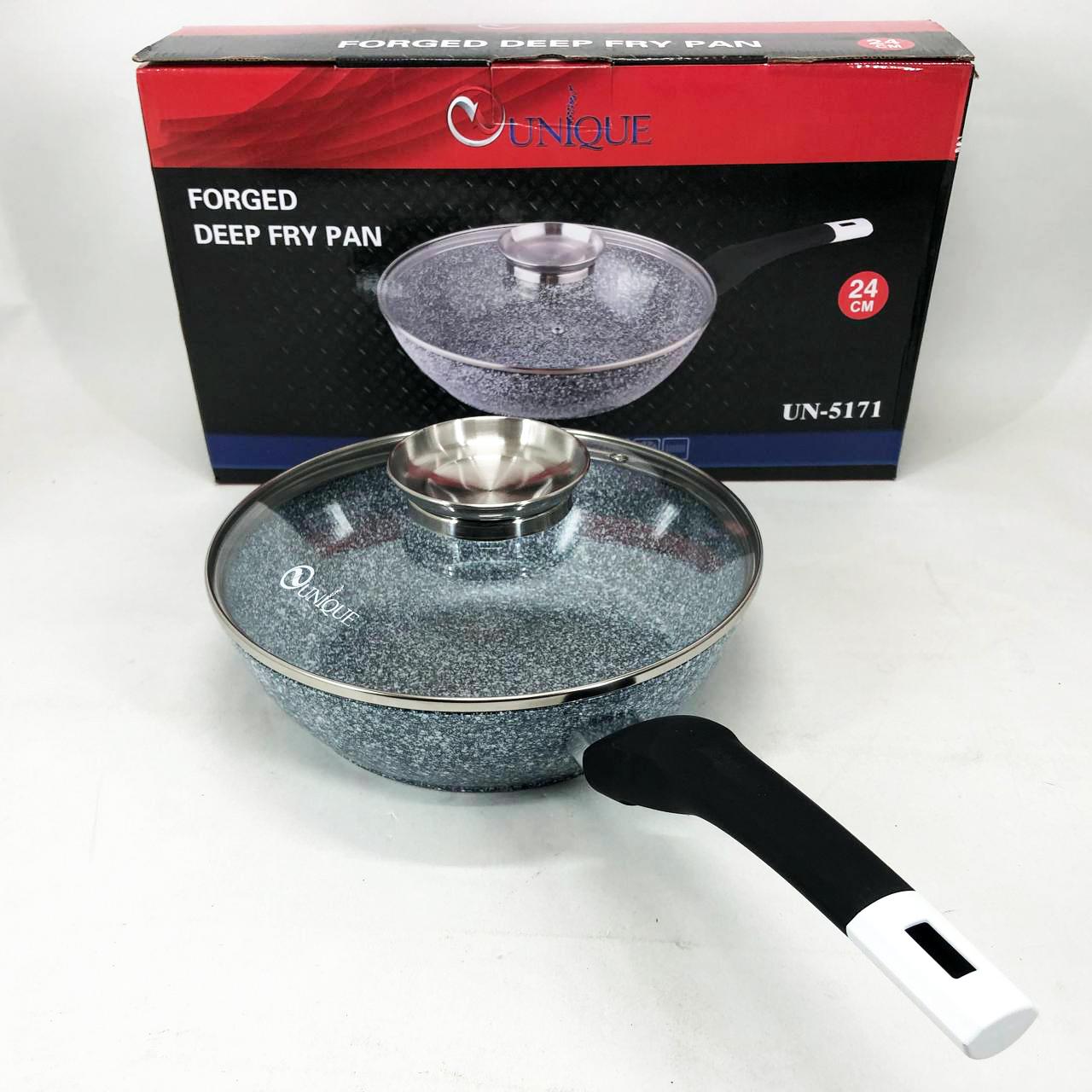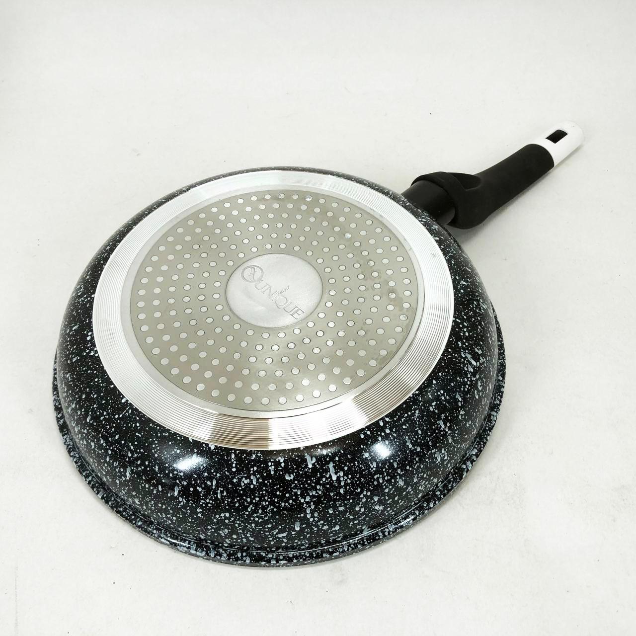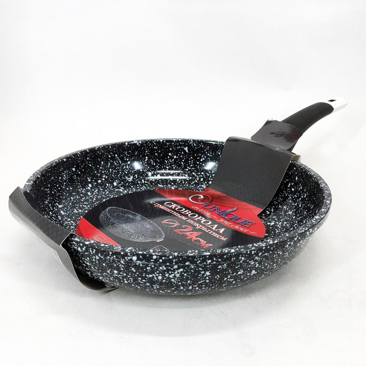 Сковорода UNIQUE Granite coating UN-5104 діаметром 24 см — це універсальний інструмент для вашої кухні, виготовлений із міцного литого алюмінію. Головною перевагою моделі є багатошарове гранітне антипригарне покриття, яке складається з кількох шарів кам’яної крихти на мінеральній основі. Такий склад визнаний одним із найбезпечніших для здоров’я та екології, оскільки не виділяє шкідливих речовин при нагріванні. Спеціальна пориста структура покриття дозволяє досягати професійного результату просмажування, забезпечуючи страві апетитну хрустку скоринку при збереженні соковитості продуктів. Сковорода вирізняється високою зносостійкістю та привабливим дизайном, що пасує до будь-якого сучасного інтер’єру.