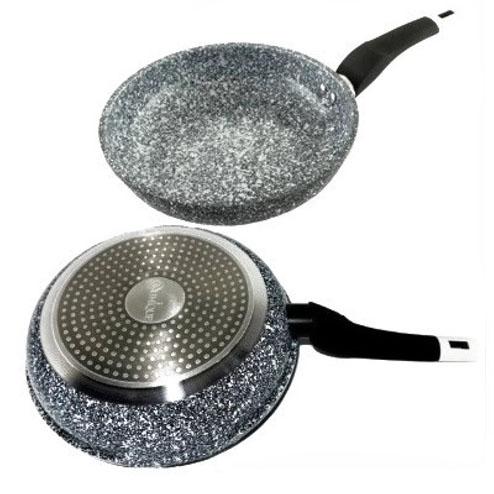 Сковорода UNIQUE Granite coating UN-5106 діаметром 28 см — це професійне рішення для вашої кухні, виготовлене з високоякісного литого алюмінію. Головною перевагою моделі є інноваційне багатошарове покриття з кам’яної крихти на мінеральній основі. Таке гранітне напилення визнане одним із найбезпечніших для здоров’я людини та навколишнього середовища, оскільки не виділяє токсичних речовин при нагріванні. Завдяки новій системі пористого антипригарного шару, продукти просмажуються рівномірно, дозволяючи досягти апетитної скоринки при мінімальному використанні олії. Велика площа жарочної поверхні та товсте дно забезпечують стабільну температуру, що робить цю сковороду ідеальною для приготування м’яса, гарнірів та страв на велику родину.
