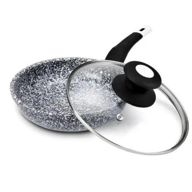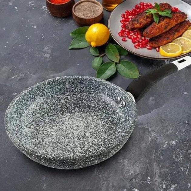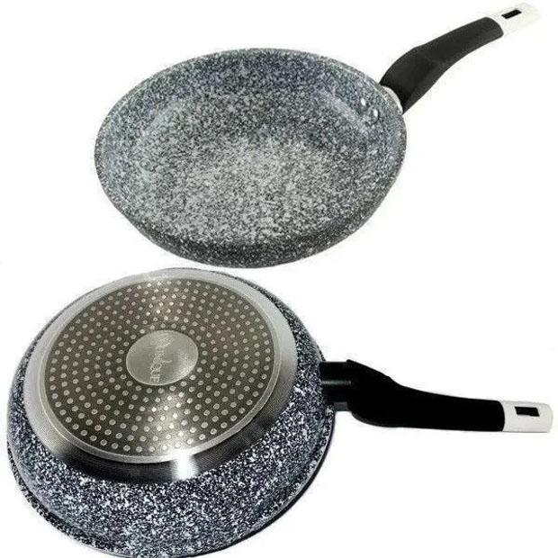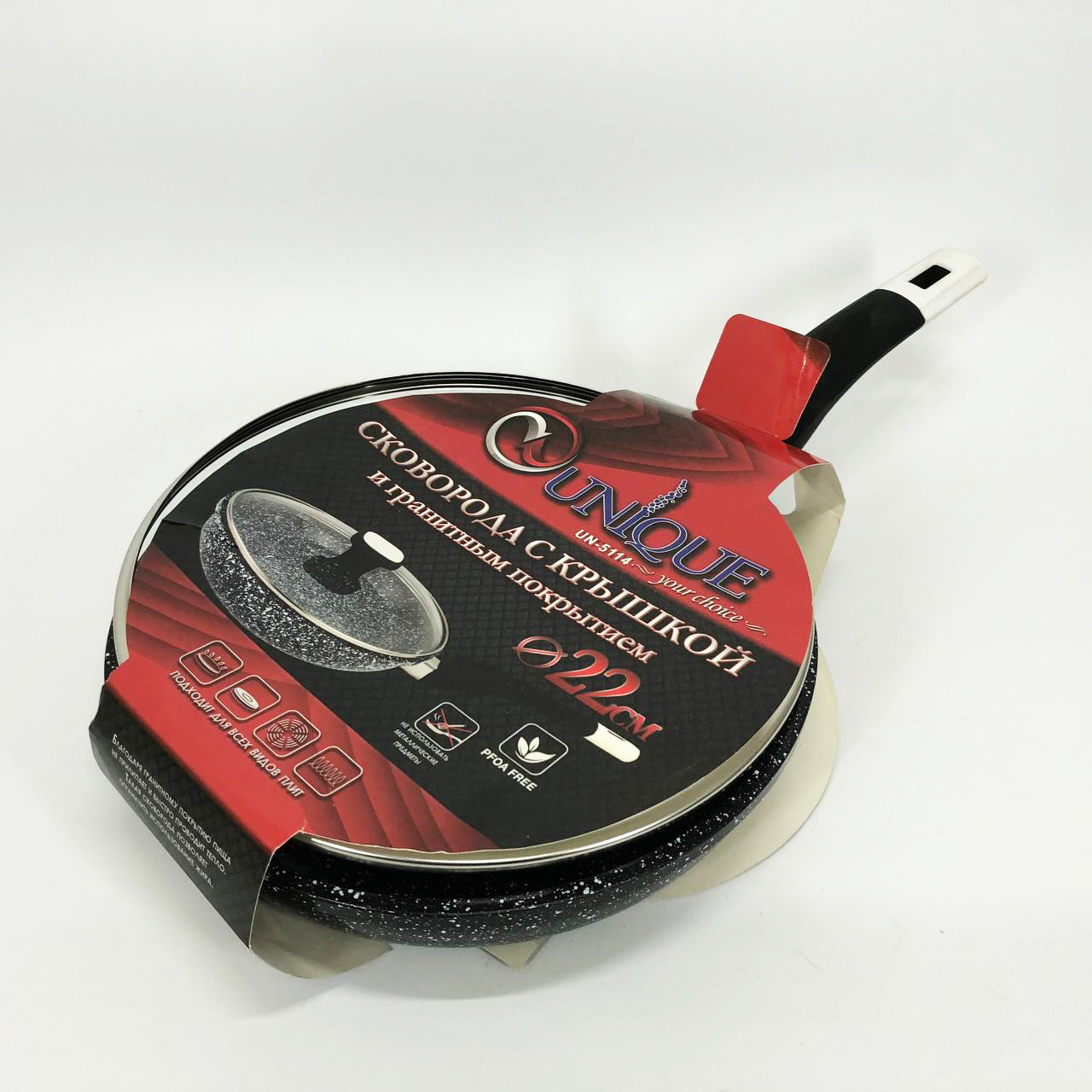 Сковорода UNIQUE UN-5114 діаметром 22 см — це сучасний посуд, що поєднує в собі українські традиції якості та передові міжнародні технології. Корпус виготовлений із високоміцного алюмінію, що забезпечує швидке нагрівання та рівномірний розподіл тепла, сприяючи значному енергозбереженню. Головною особливістю моделі є багатошарове гранітне покриття на мінеральній основі. Частинки граніту значно посилюють захист робочої поверхні, роблячи сковороду стійкою до зносу та довговічною. Завдяки унікальній пористій системі антипригарного шару, продукти просмажуються рівномірно, дозволяючи готувати з мінімальною кількістю олії та зберігати природний смак інгредієнтів.