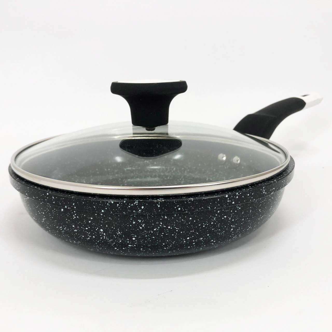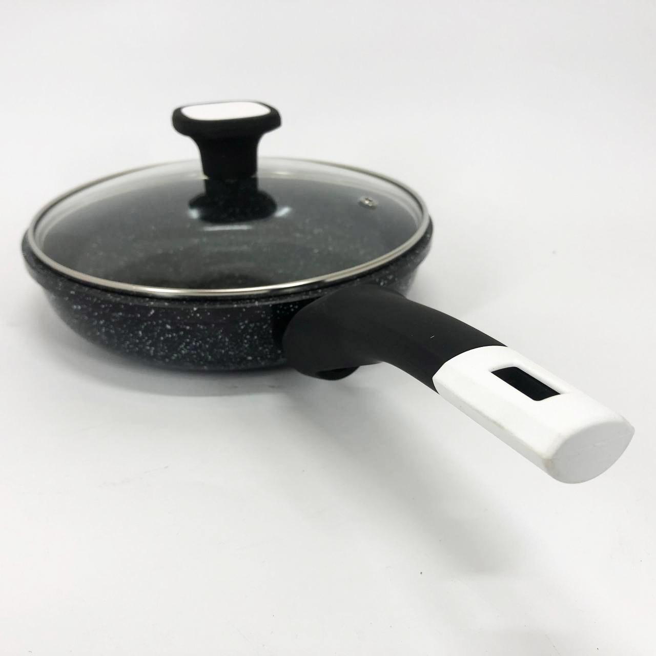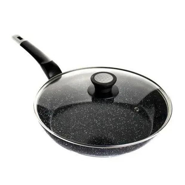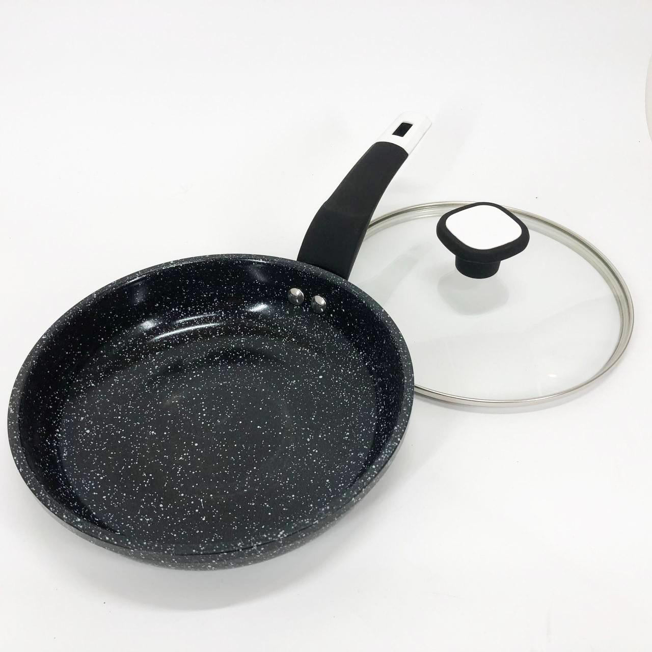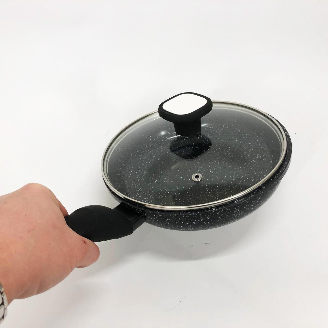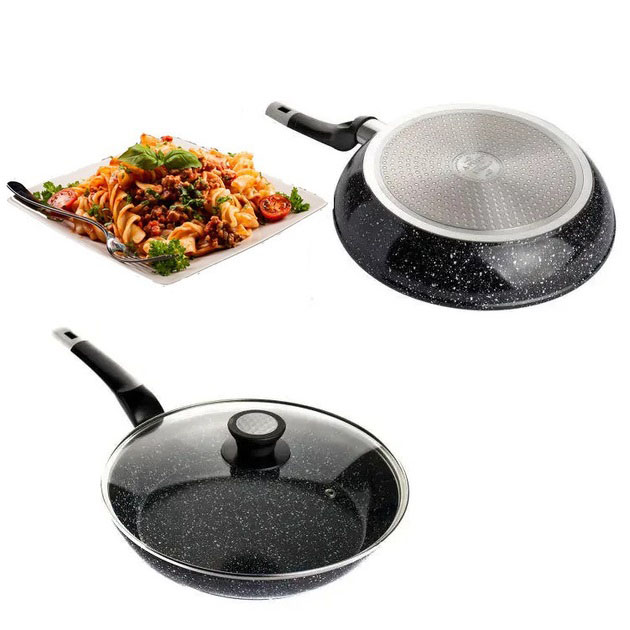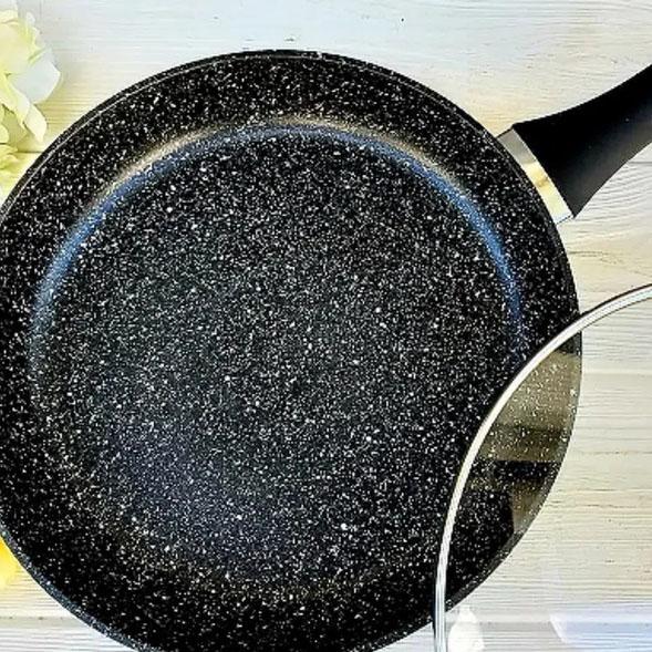 - Гранітна крошка значно посилює захист поверхні, роблячи сковороду стійкою до зносу.