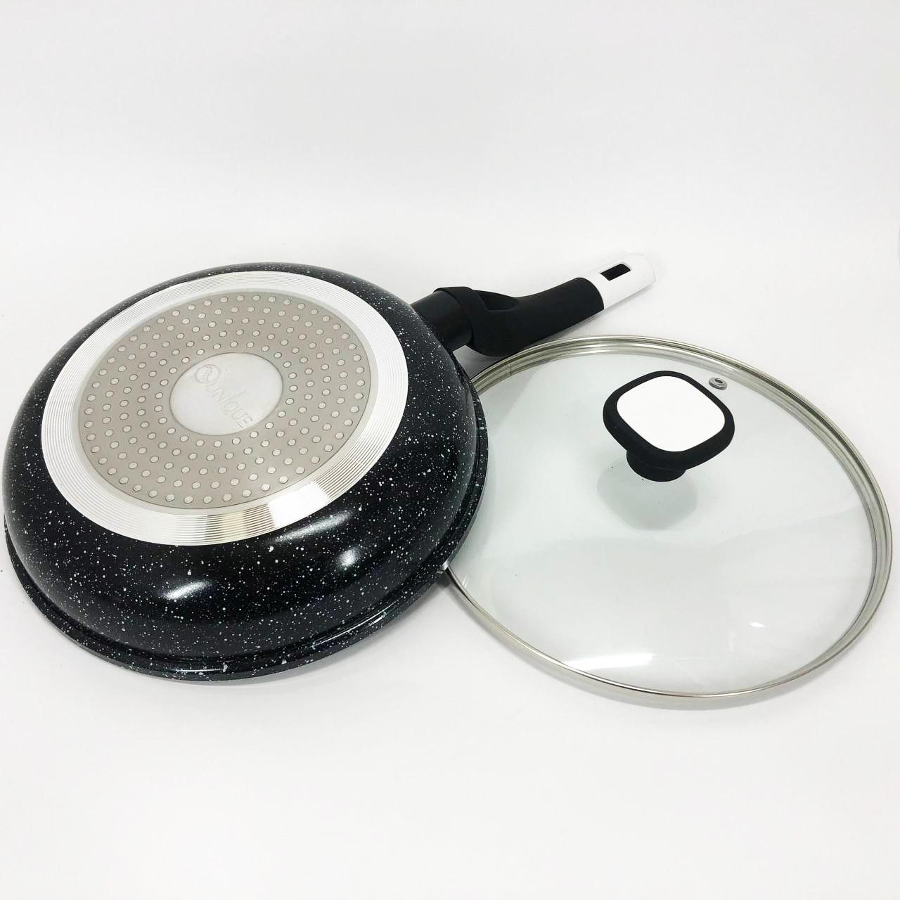 Сковорода UNIQUE UN-5144 діаметром 22 см — це ідеальне поєднання довговічності та сучасних технологій для вашої кухні. Виготовлена з високоякісного алюмінію, вона оснащена багатошаровим гранітним антипригарним покриттям, посиленим частинками кам’яної крихти. Така структура значно підвищує захист поверхні, роблячи сковороду стійкою до зносу та механічних пошкоджень. Спеціальна система пористого покриття дозволяє продуктам рівномірно просмажуватися до апетитної золотистої скоринки з мінімальним використанням олії. Компактний розмір і стильний дизайн у кольорі темний граніт роблять цю модель незамінним інструментом для щоденного приготування здорової та смачної їжі.