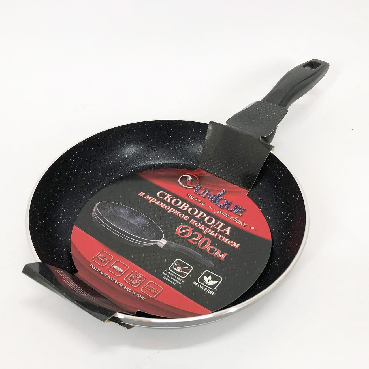 Сковорода UNIQUE UN-5152 діаметром 20 см — це поєднання довговічності та сучасних технологій для вашої кухні. Виготовлена з високоякісного литого алюмінію, вона оснащена багатошаровим мармуровим антипригарним покриттям на мінеральній основі. Головною особливістю моделі є двостороннє нанесення захисного шару, що значно полегшує догляд та запобігає пригорянню їжі як всередині, так і зовні. Спеціальна пориста система покриття Granite coating дозволяє досягти ідеальної хрусткої скоринки при мінімальному використанні олії, що робить її незамінною для прихильників здорового харчування. Обтяжене багатошарове дно гарантує рівномірний розподіл тепла, що прискорює процес приготування та допомагає зберігати корисні властивості продуктів.