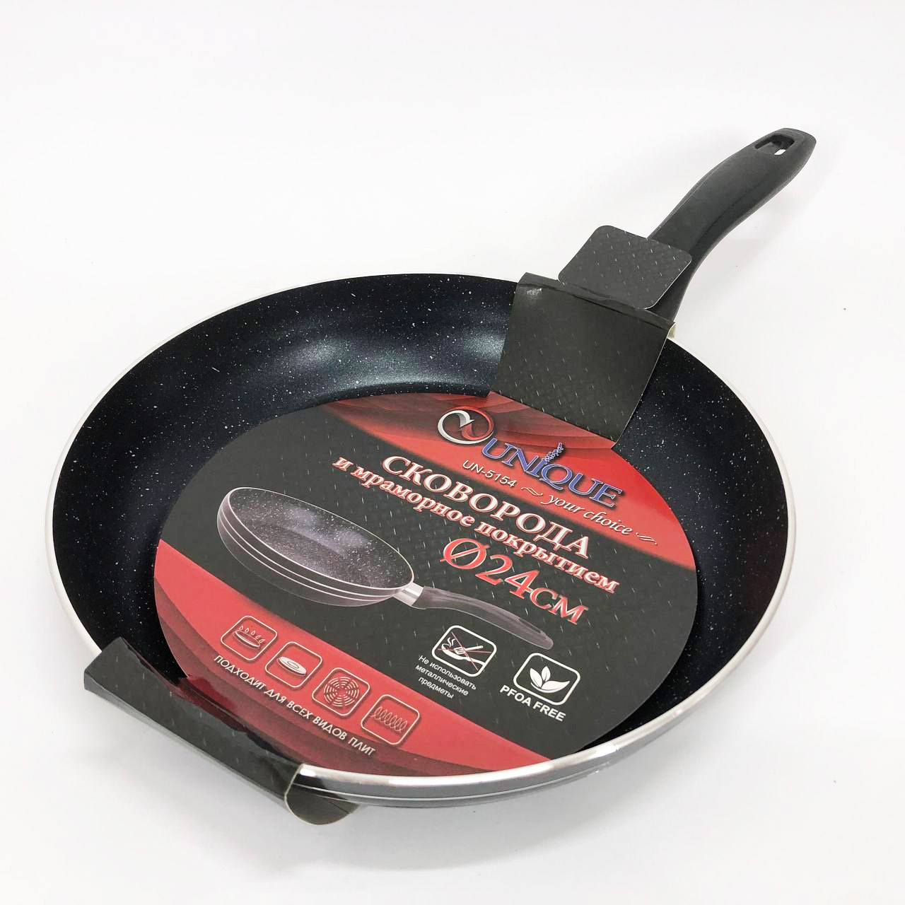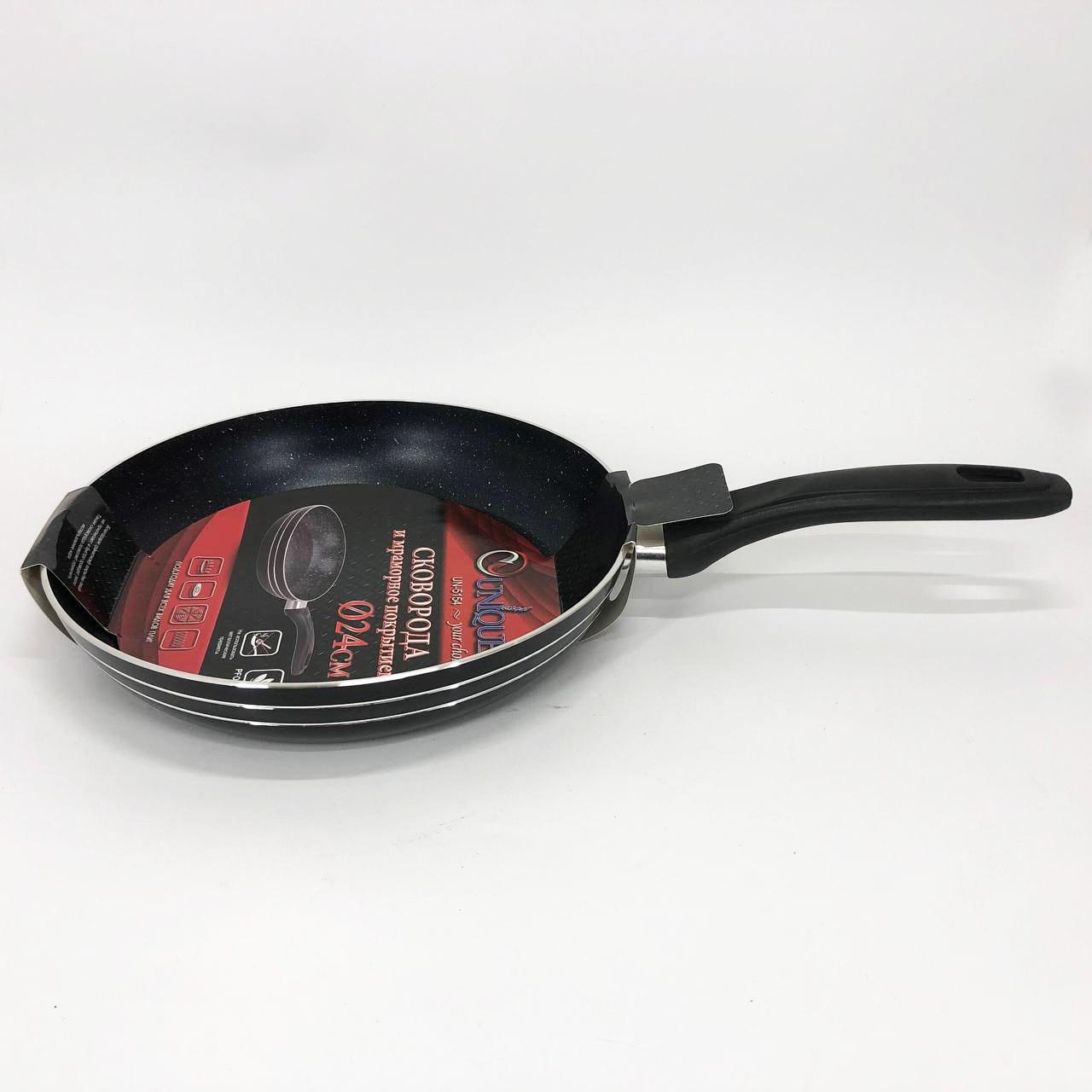 Сковорода UNIQUE UN-5154 діаметром 24 см поєднує в собі високу міцність та максимальний комфорт у щоденному використанні. Корпус виготовлений із високоякісного алюмінію, який миттєво прогрівається та рівномірно розподіляє тепло по всій робочій поверхні. Завдяки багатошаровому мармуровому антипригарному покриттю, їжа не прилипає до дна та стінок навіть при мінімальному використанні олії. Посуд виконаний з екологічно чистих матеріалів, які не вбирають сторонні запахи та не впливають на смакові якості продуктів. Сковорода легко очищується після використання та підходить для інтенсивної експлуатації на будь-якій сучасній кухні.