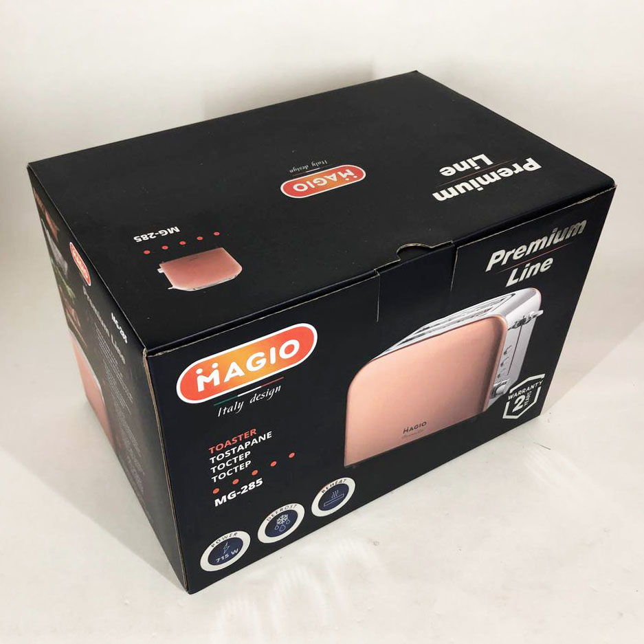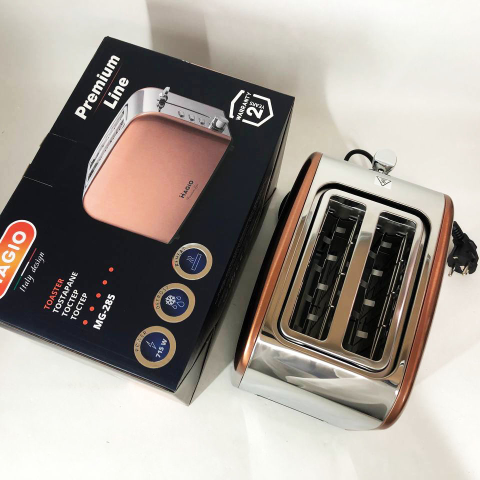 Тостер MG-285 максимально легко впишеться в інтер’єр кухні завдяки лаконічному дизайну. Крім дизайнерської сторони, він ще й відмінно підрум’янить тости до сніданку, оскільки має потужність 715 Вт.
